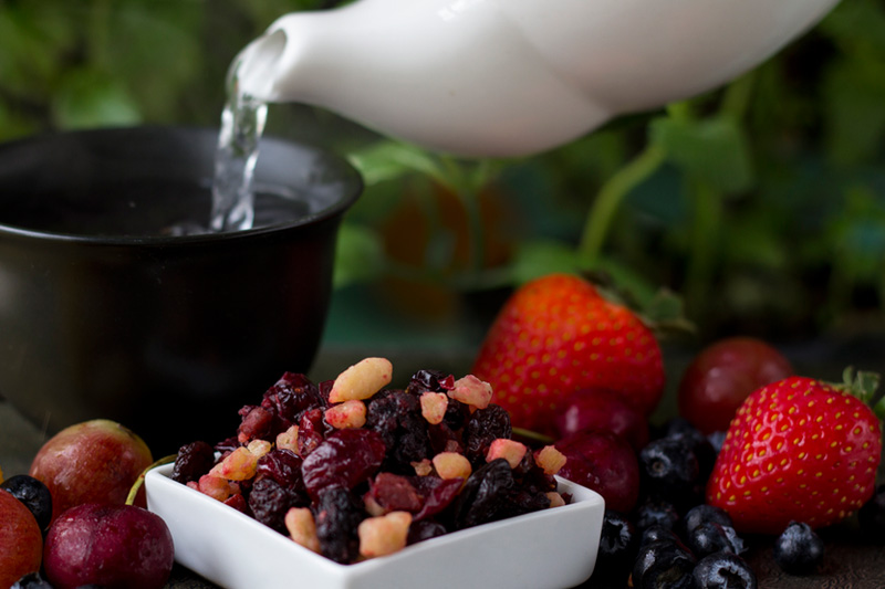 Deliciosas infusiones hechas a base de frutas deshidratadas, son relajantes y sin teína, ricas en vitamina C y fibra.